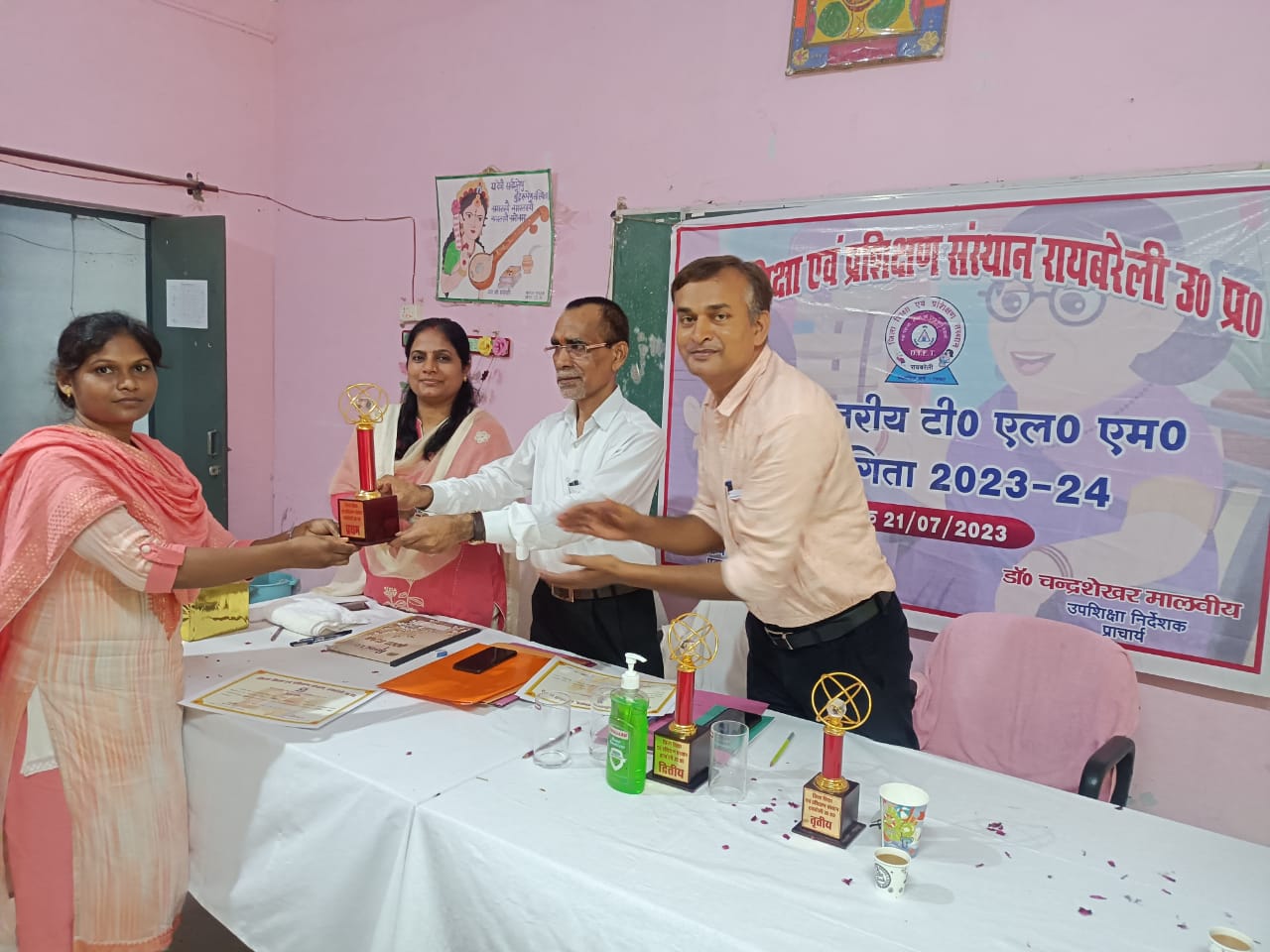 राज्य शैक्षिक अनुसंधान एवं प्रशिक्षण परिषद उत्तर प्रदेश द्वारा आयोजित राज्य स्तरीय टी० एल० एम०निर्माणप्रतियोगिता के अंतर्गत21 जुलाई 2023 को डायट में आयोजित जनपद स्तरीय टी ० ए ल० एम० प्रतियोगिता में राजकीय बालिका हाई स्कूल ओसाह रायबरेली की सहायक अध्यापिका कु० विद्या (हिन्दी) ने प्रथम स्थान प्राप्त किया | विद्यालय की प्रधानाचार्या ने हार्दिक बधाई दी